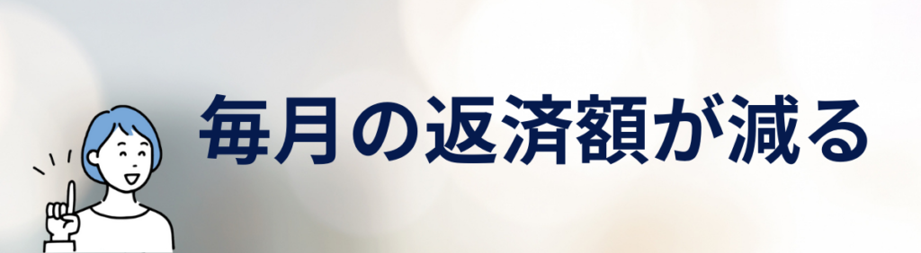 将来の利息がカットされることで、実質的に返済総額が減額されることになります。さらに、その影響で、月々の返済額も減ることになるので、大きなメリットになりますね。